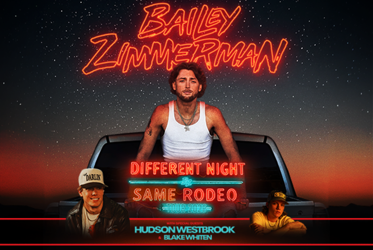 Get ready to saddle up for Bailey Zimmerman's Different Night Same Rodeo Tour at Akins Ford Arena! Joining the multi-platinum country superstar are Blake Whiten and Hudson Westbrook.