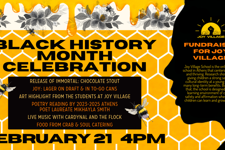 The evening will feature readings from Athens Poet Laureate Mikhayla Smith, with live music from Cardynal and the Flock. We will also be featuring artwork from Joy Village students, as well as additional taproom art from Broderick Flanigan.