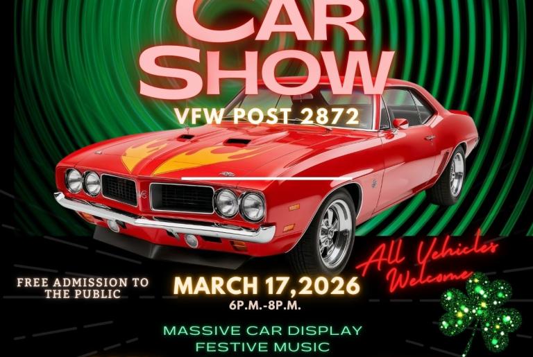 You're invited to join the St. Patrick's Day Celebration and Irish Classic Car Show. The party will be inside of the VFW Post 2872 and the Classic Car Show outside in the parking lot.