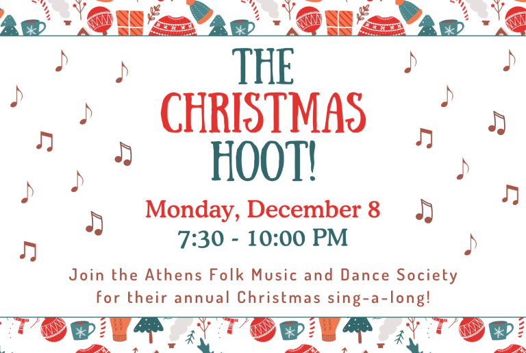 Get your singing voices ready and your holiday spirit in full swing because The Athens Folk Music and Dance Society are holding The Christmas Hoot at Athentic for the second year in a row!